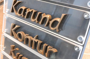 Schriften aus Bronze, Aluminium oder Edelstahl können als Einzelbuchstaben oder als zusammenhängender Schriftzug angefertigt werden.