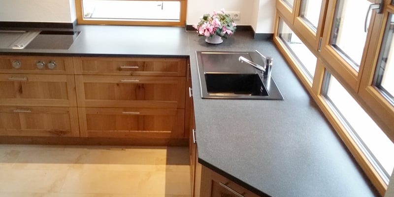 Diese Art von Arbeitsfläche bietet Ihnen höchste Hitze-, Wasser- und Abriebbeständigkeit gegenüber herkömmlichen Arbeitsplatten.
